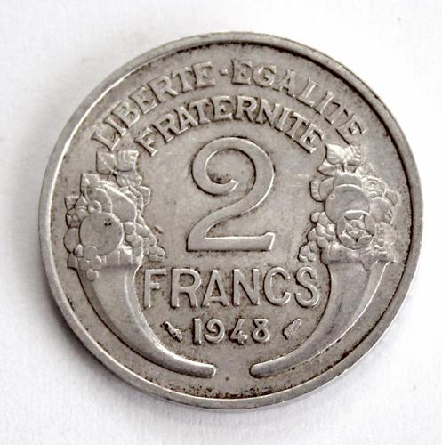 Aluminium Franse betaalmunt, 2 Francs, 1948