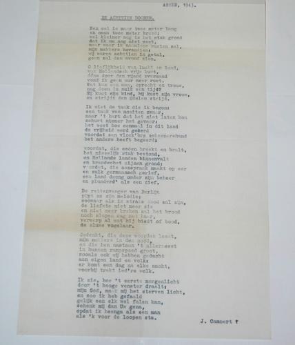 Stencil met gedicht 'De Achttien Dooden' 1943, WO2