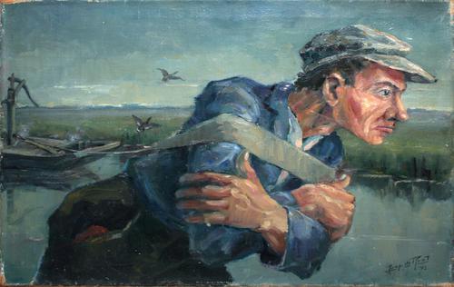 Olieverf op doek. Spoelingschuit in de Vlaardingse V...
