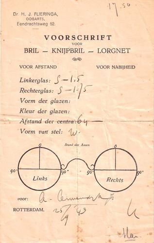 Recept voor een bril van Dr. Flieringa voor A. Ouwen...