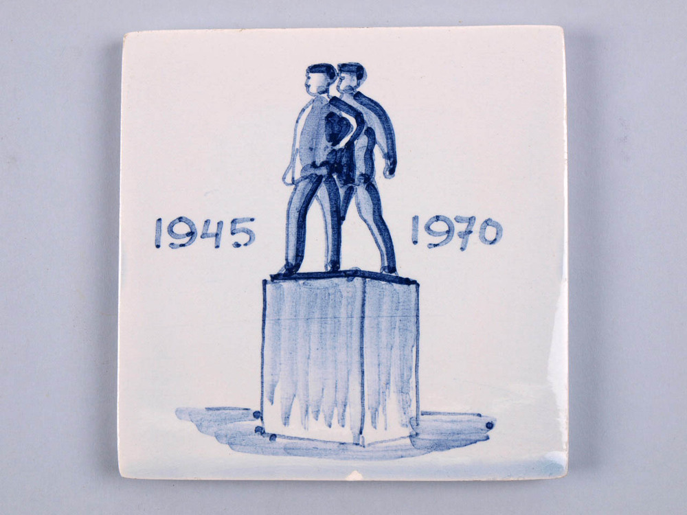 Tegel 1945 1970 met een afbeelding van een monument