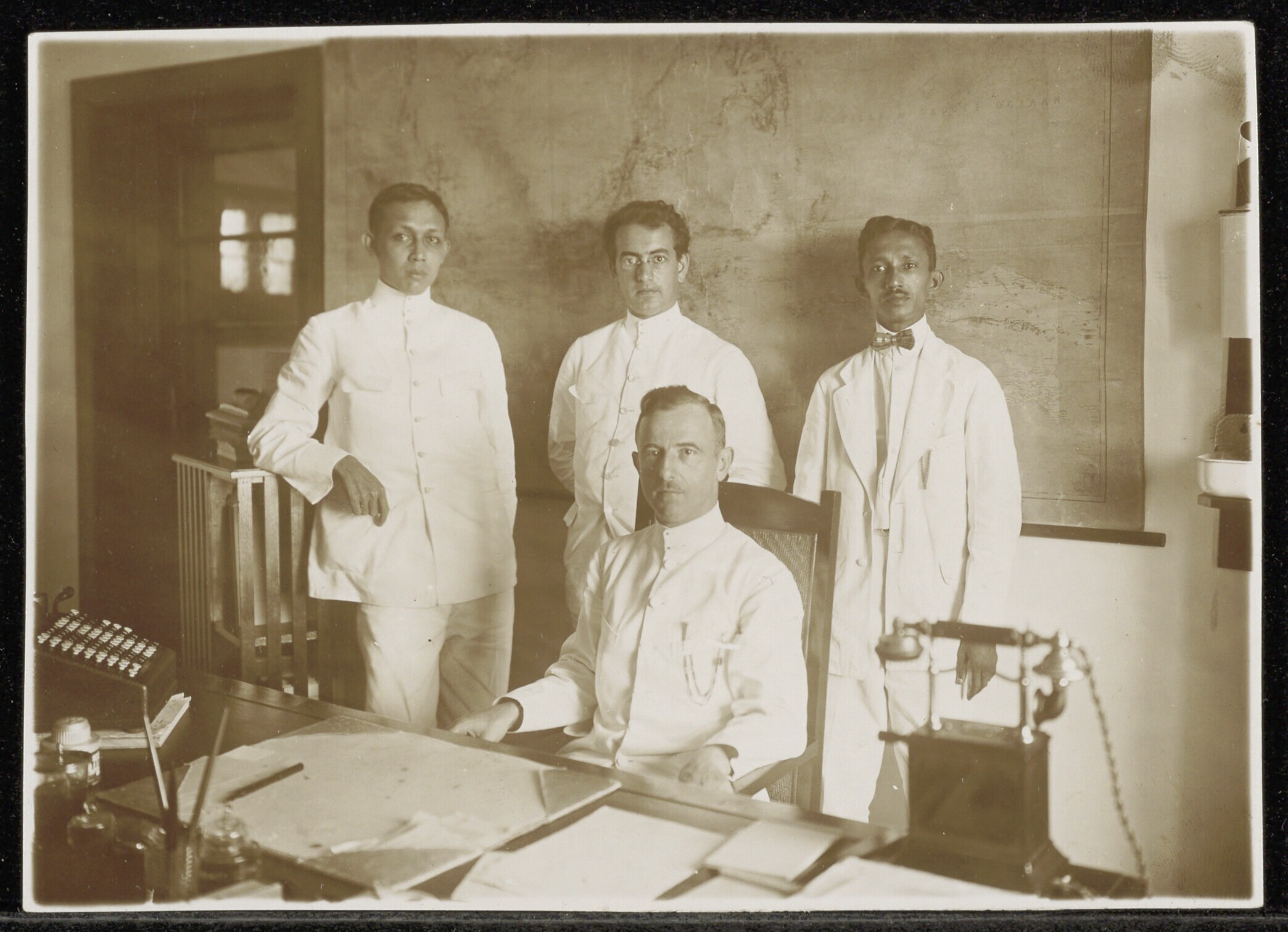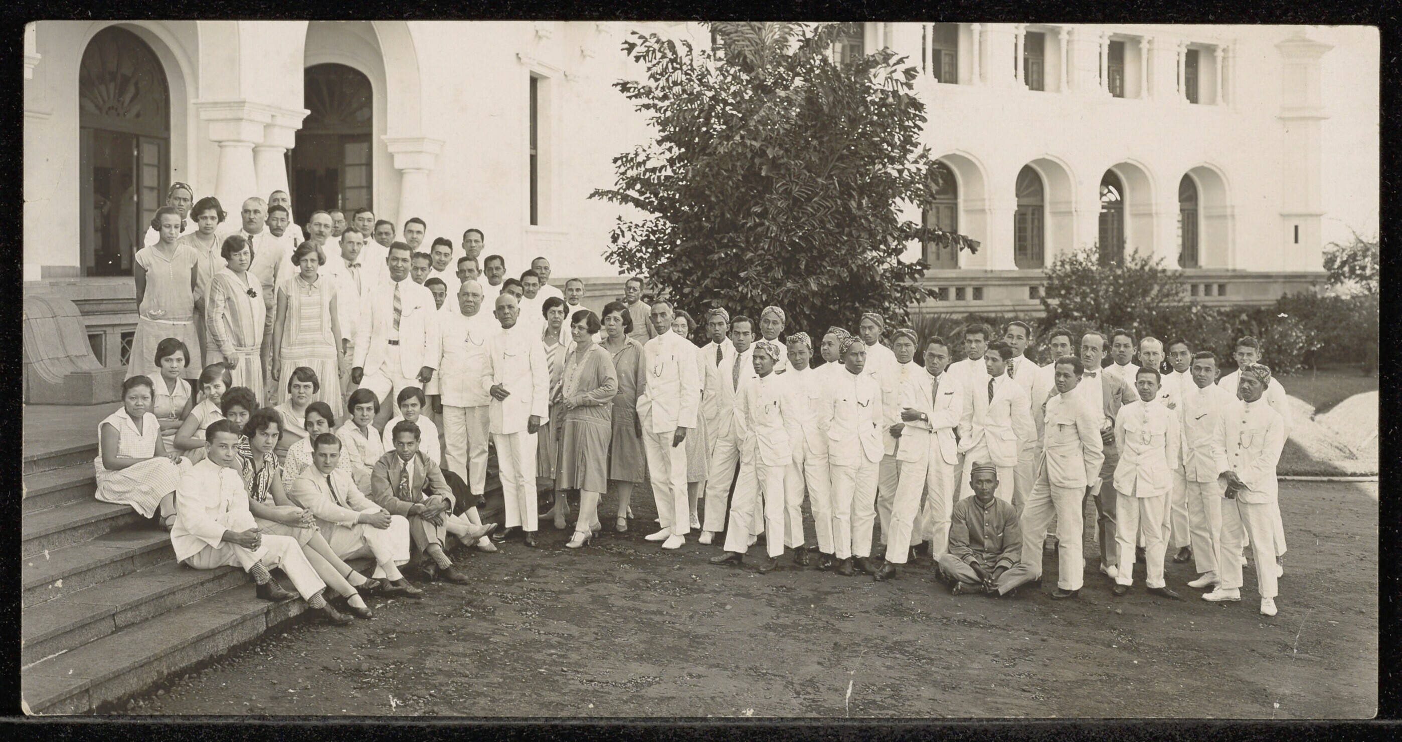 Groepsfoto, centrale figuur is Dr. Essed omringd doo...