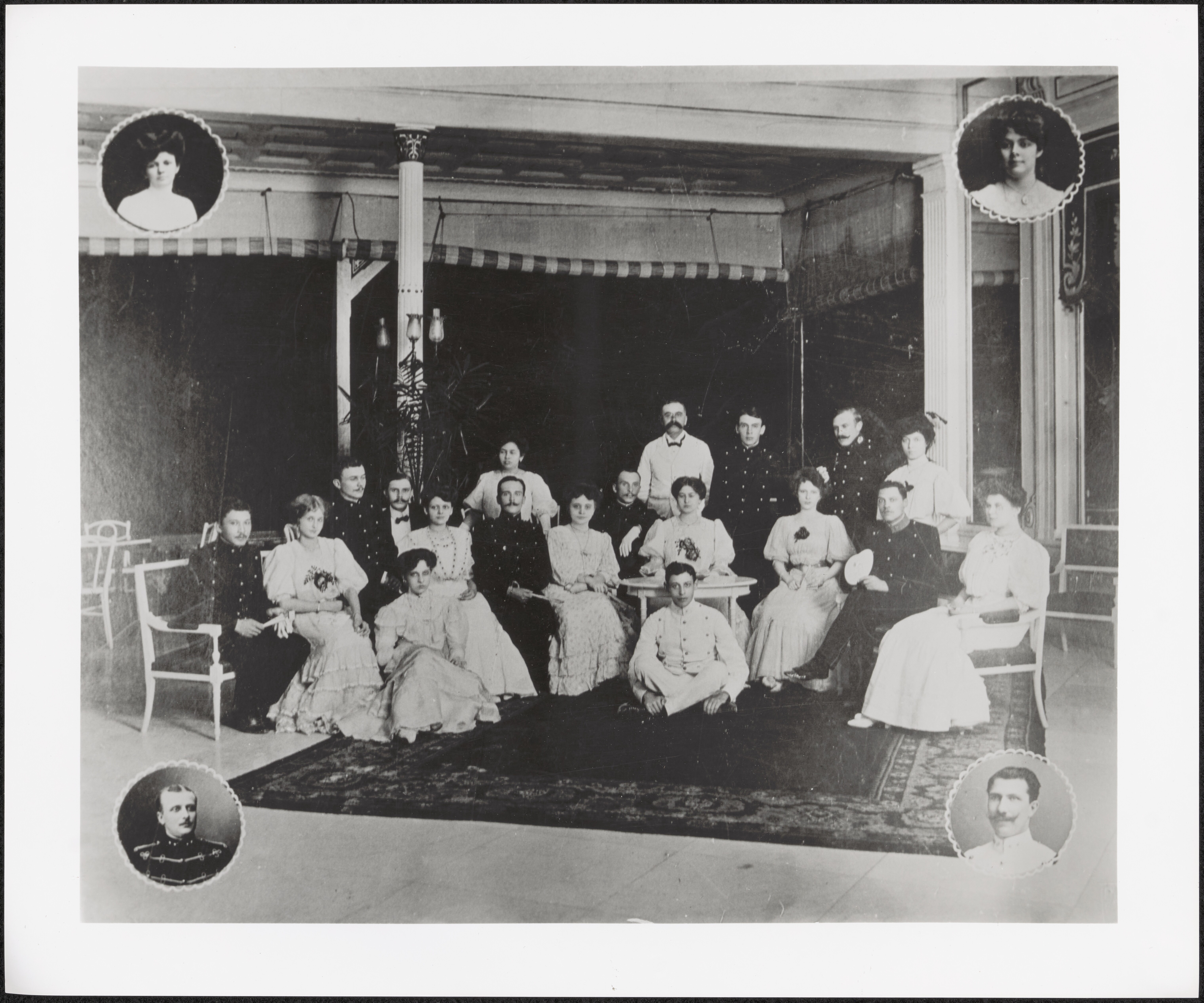 Portret van een gezelschap in de tuin