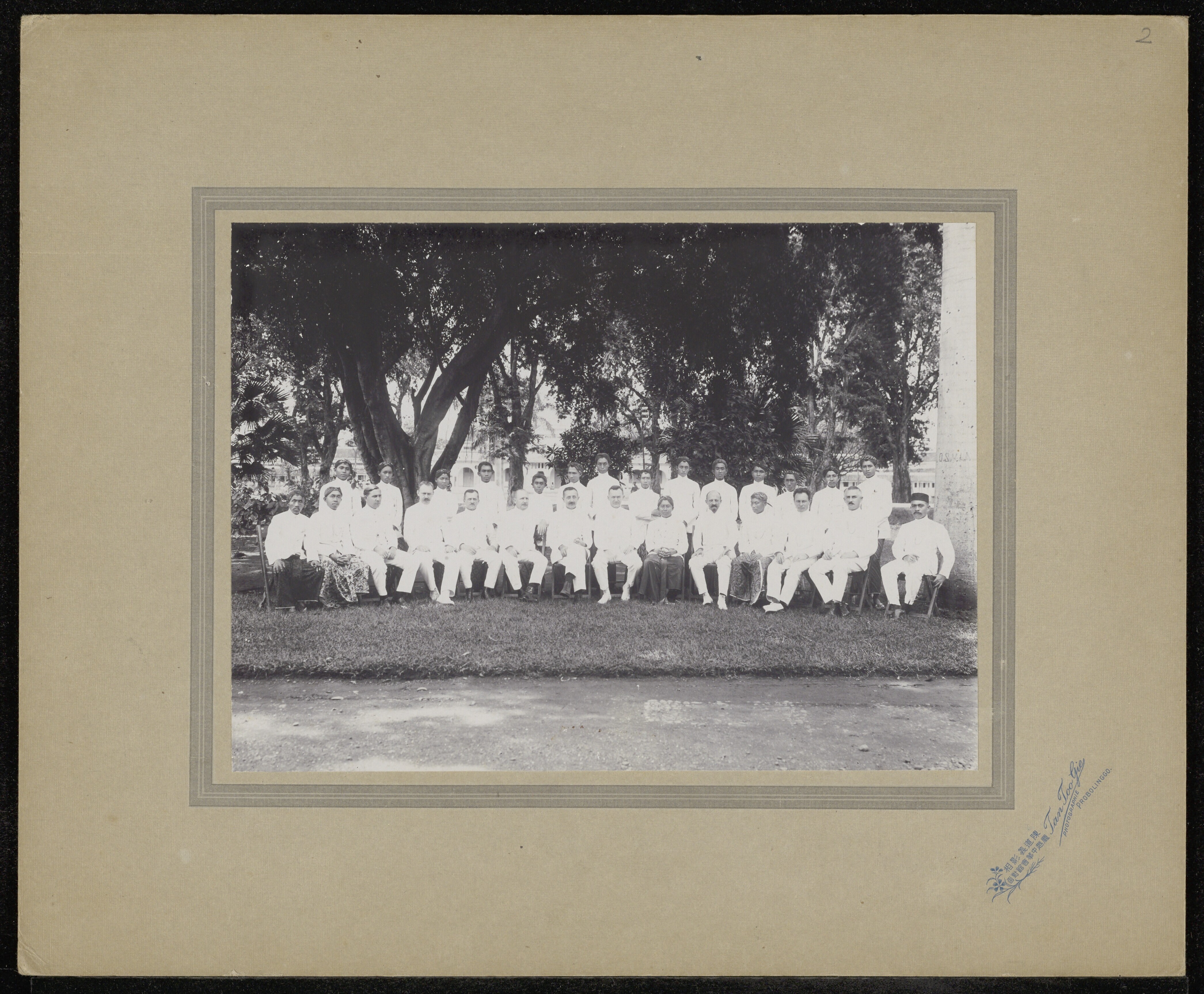 Groepsfoto, centrale figuur is Dr. Essed omringd doo...