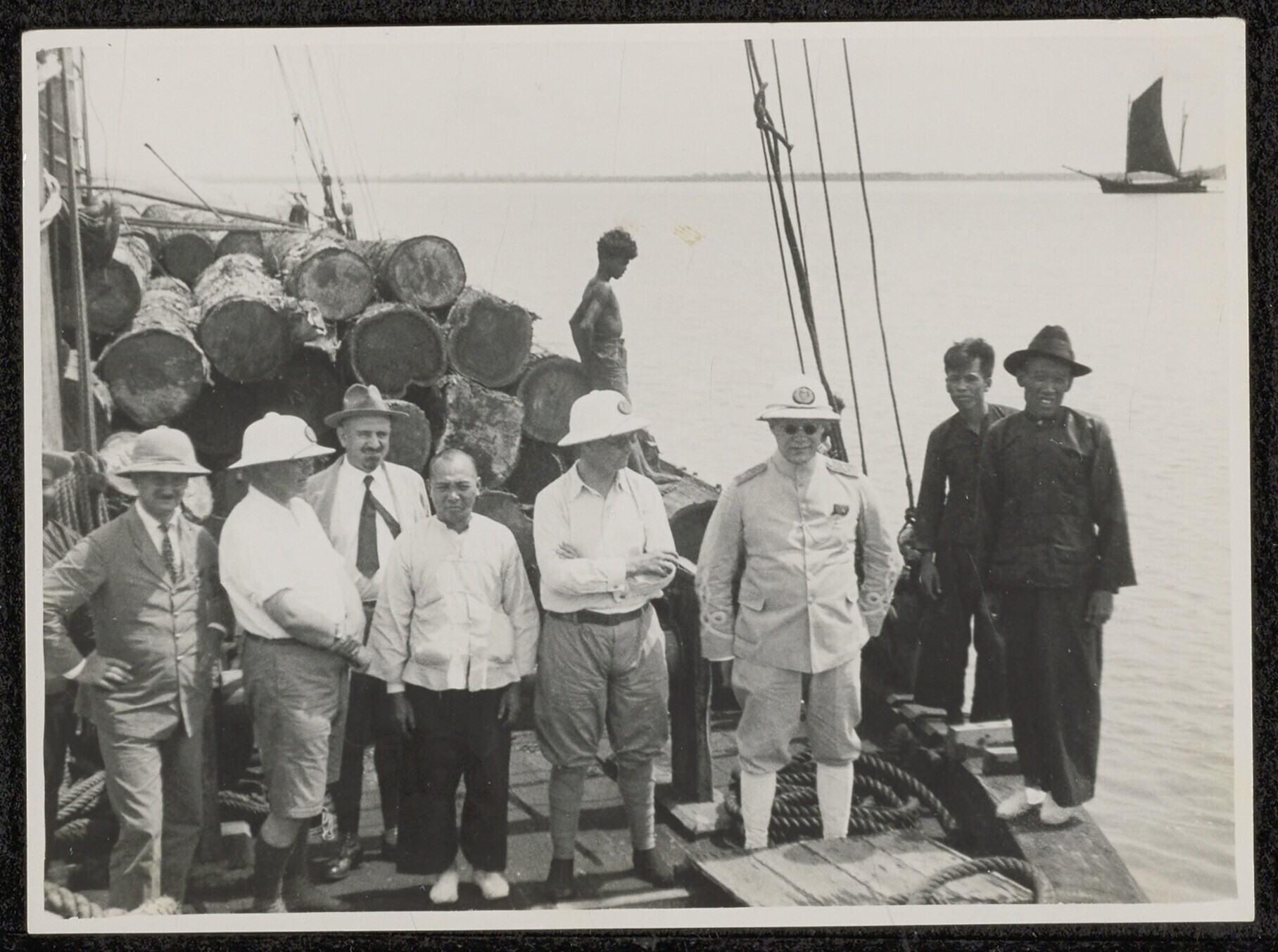 Gouverneur van Suchtelen met houtvesters op een aak ...