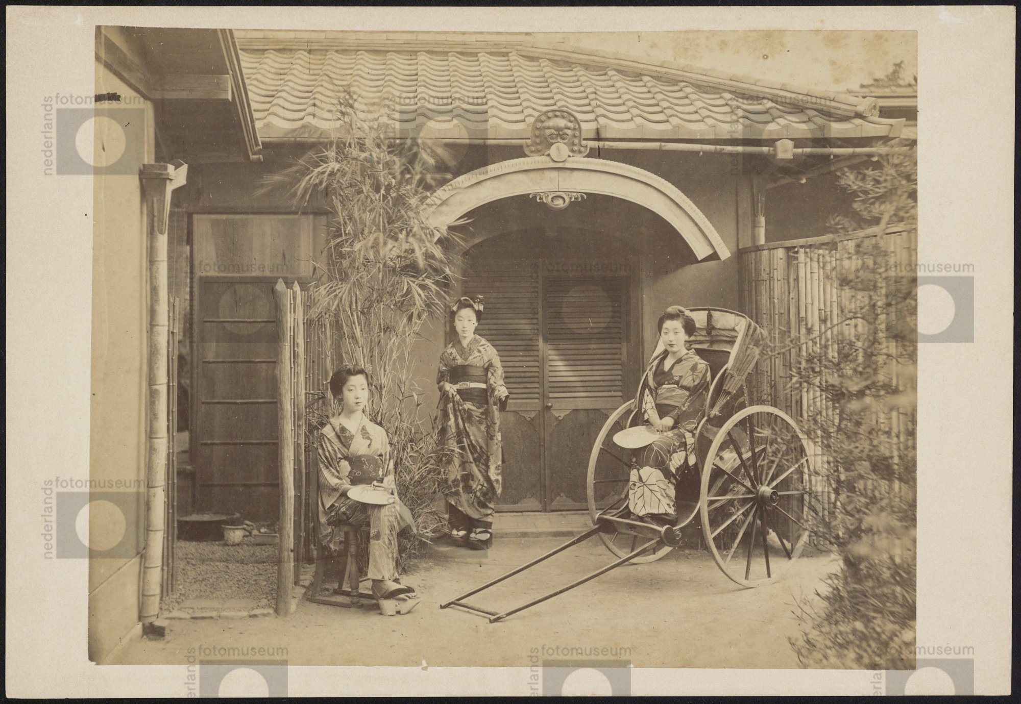 Vrouwen bij jinrikisha op binnenplaats, Japan (1881-...