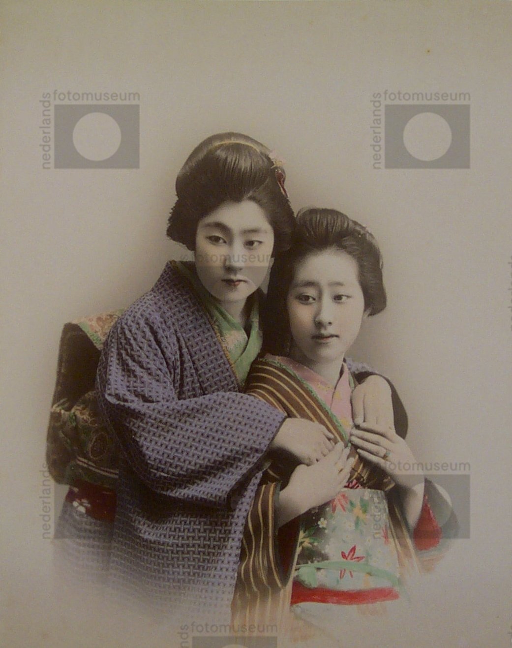 Studioportret van twee vrouwen in kimono, Japan (186...