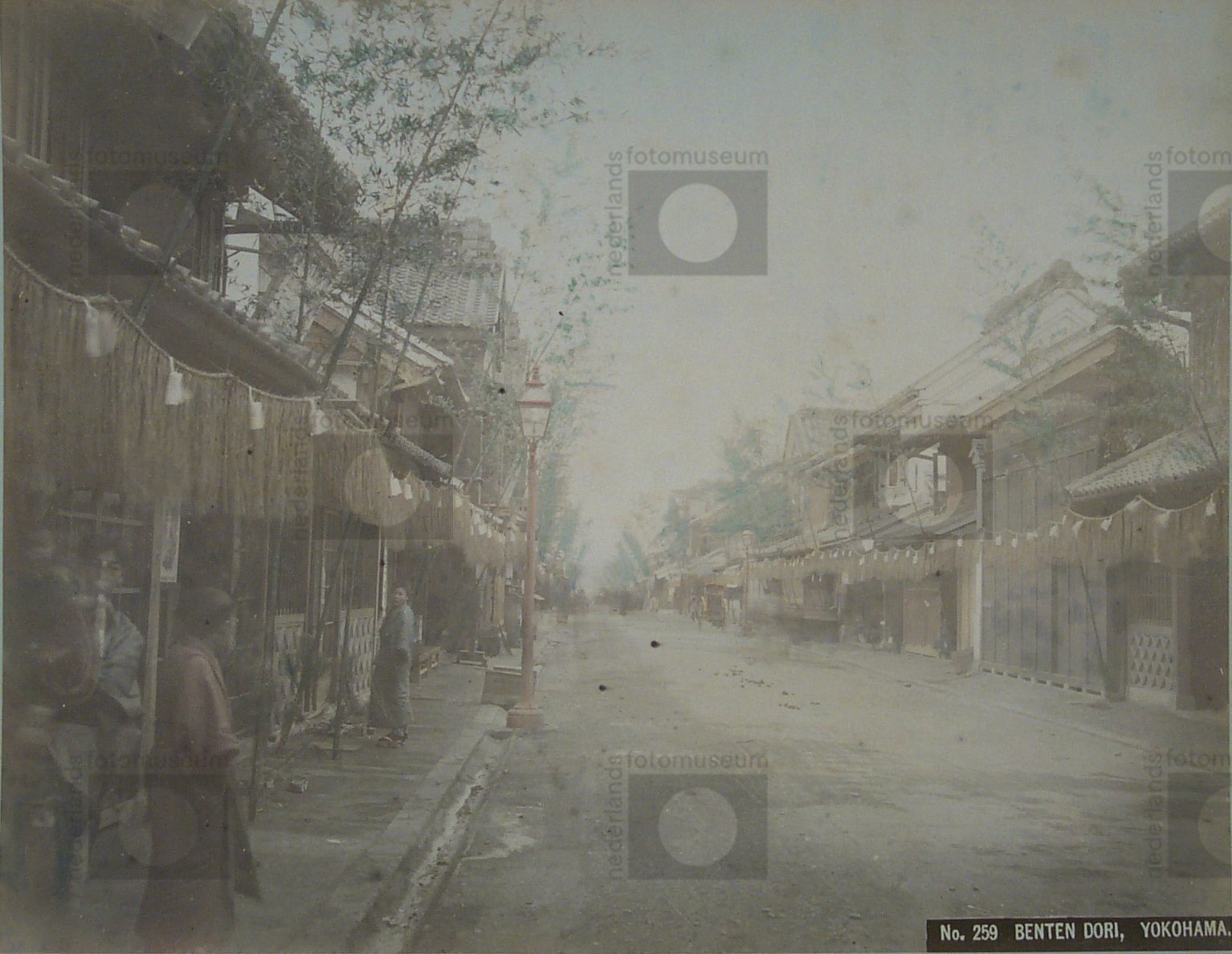 Straatbeeld met lantaarns, Yokohama, Japan (1881-1914)