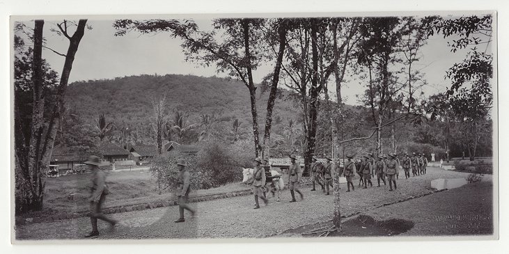 Militairen lopend over landweg, Java, Indonesië (191...