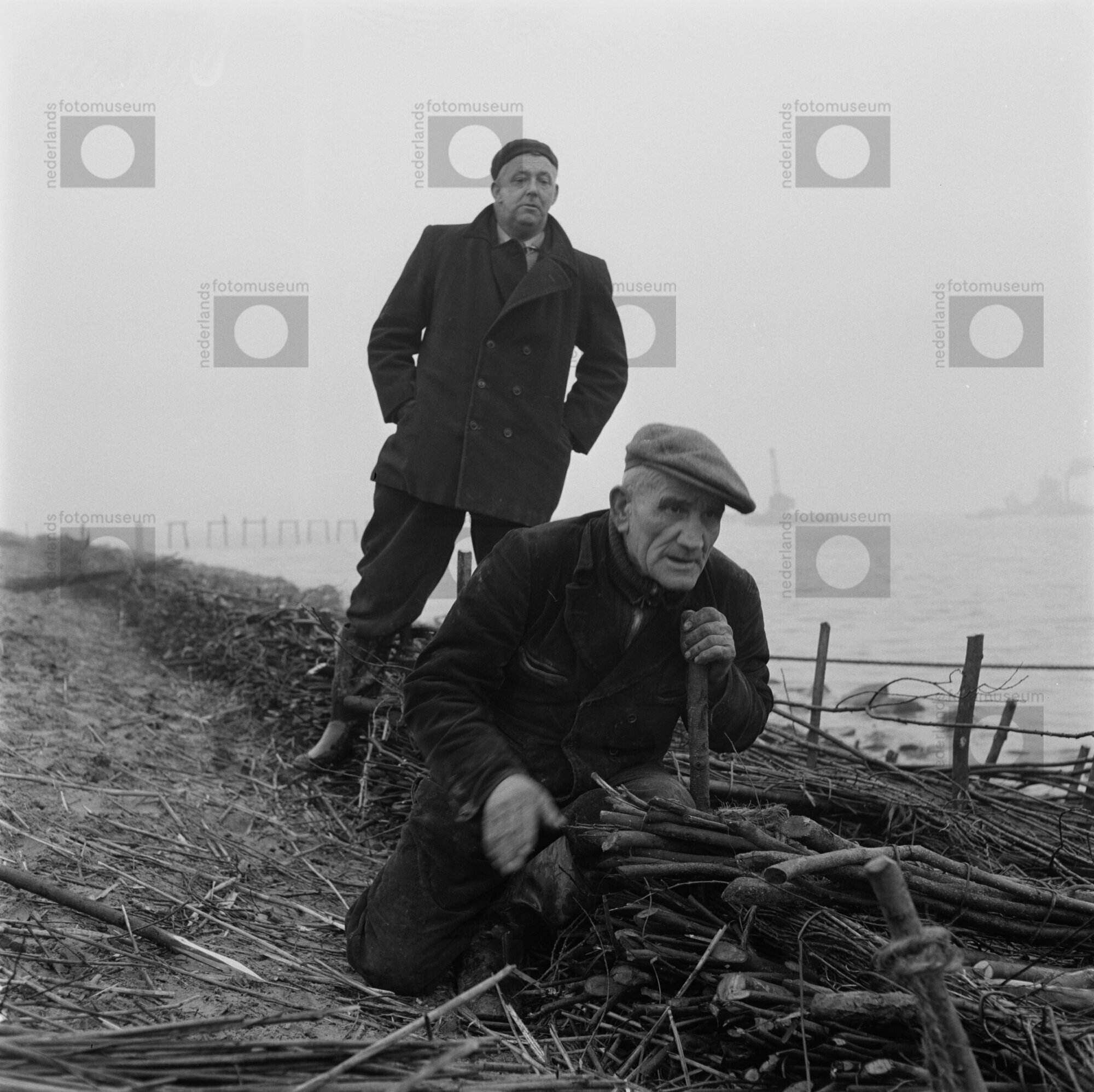Enkhuizen. Dijkaanleg. Het vlechten van de zinkstukken.