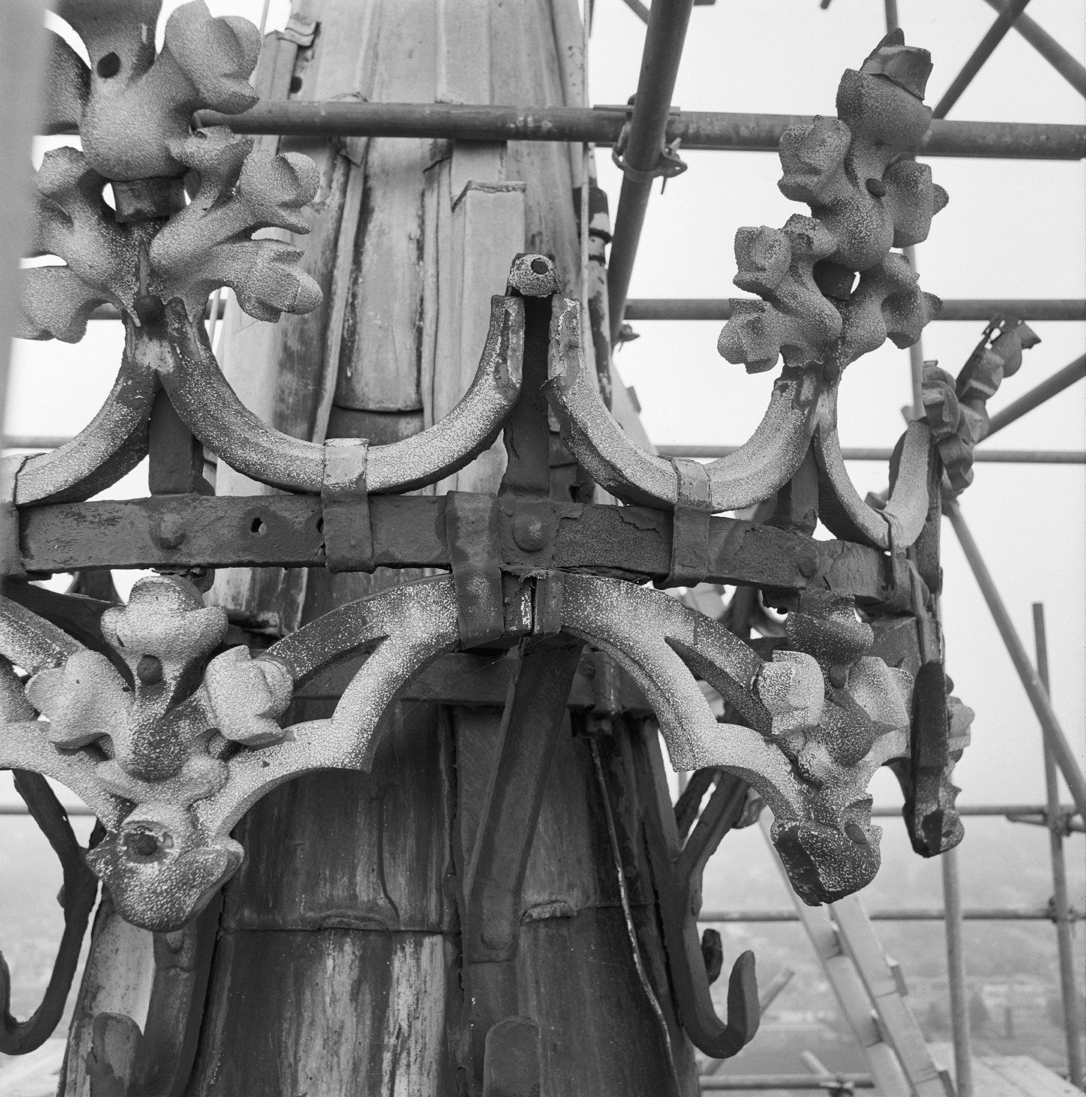 Kerk in de steigers tijdens restauratie: kapconstructie