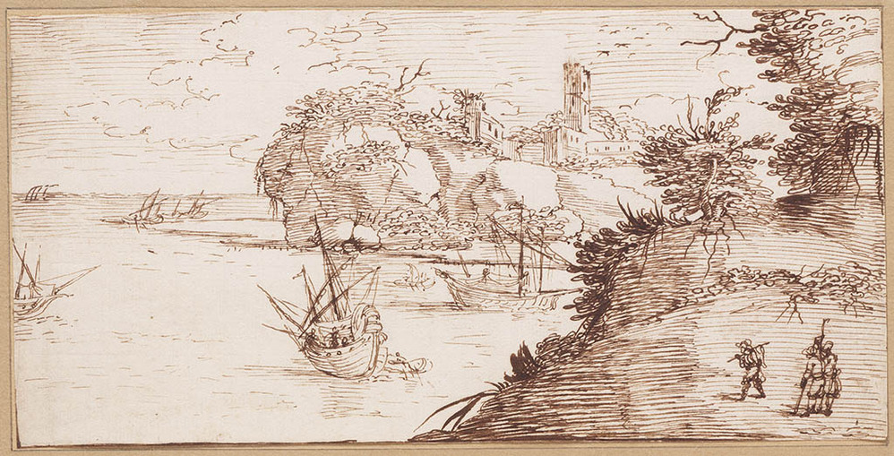 Kustgezicht met schepen op water