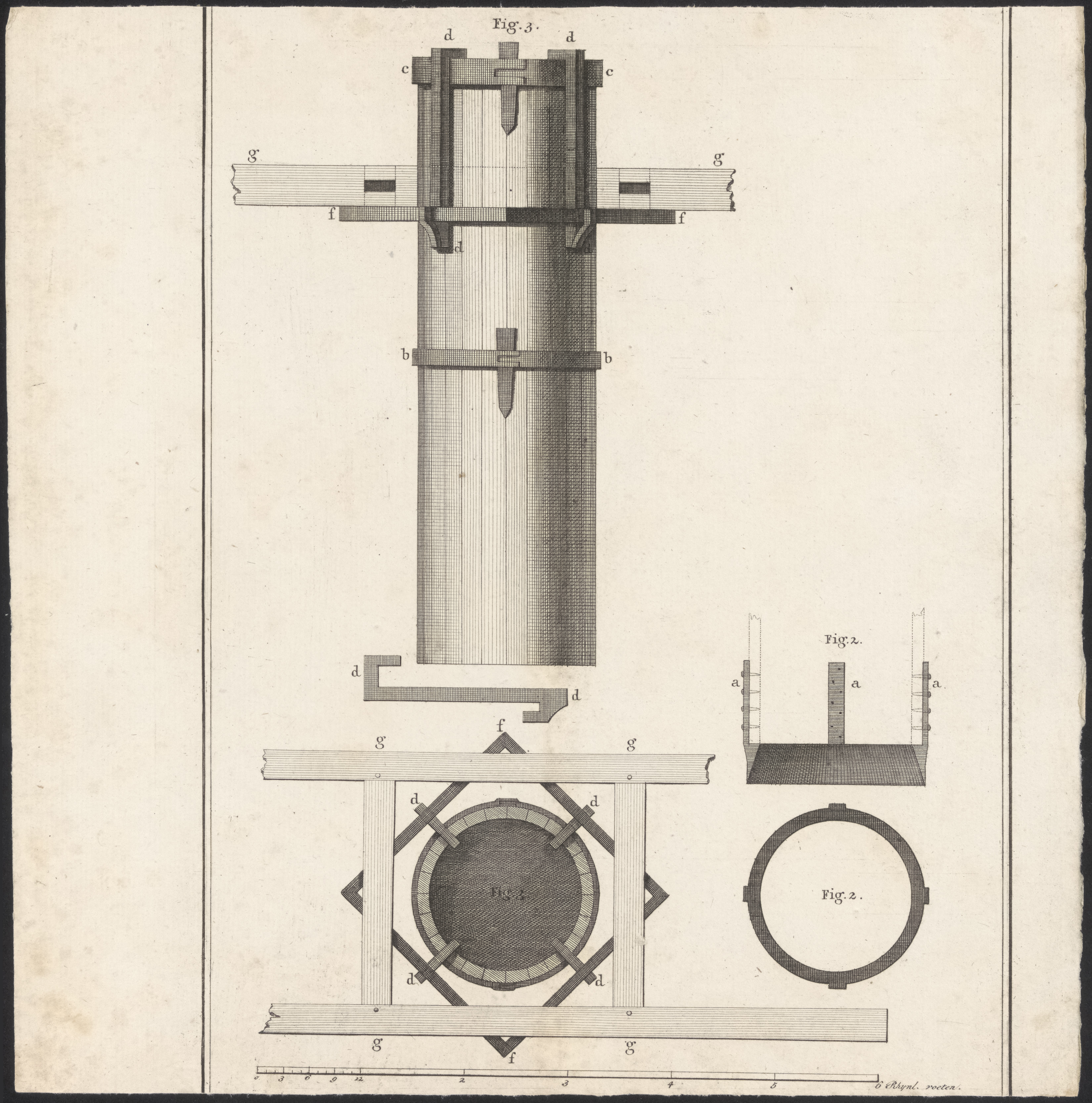 Doorsneden over waterbouwkundig gereedschap