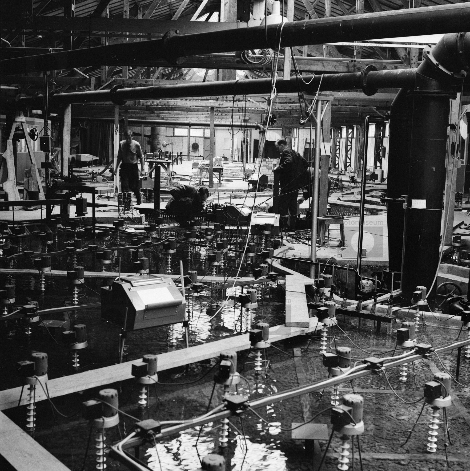 Onderzoekers aan het werk bij installatie of model, ...