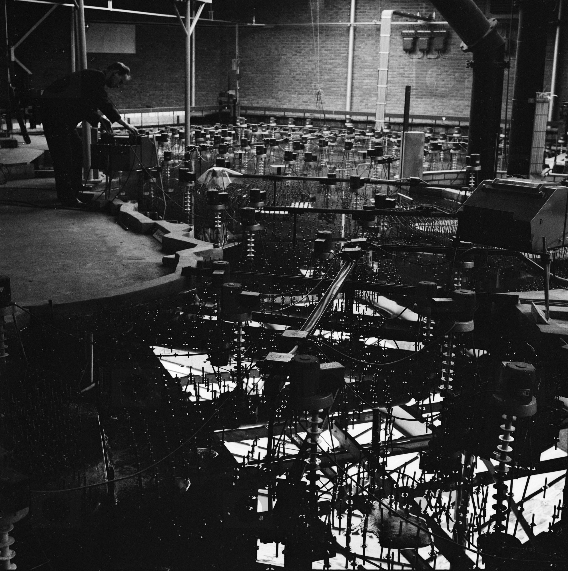 Onderzoeker aan het werk bij installatie of model, w...