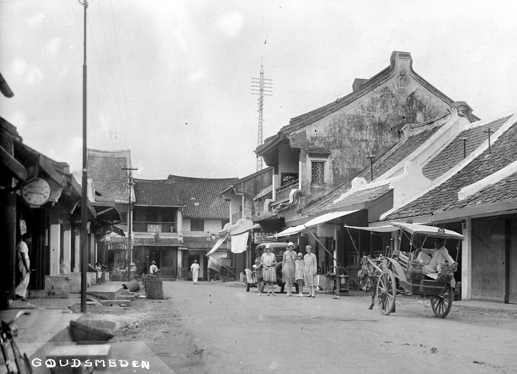 Street view with a horse-drawn wagon in Batavia's Ch...