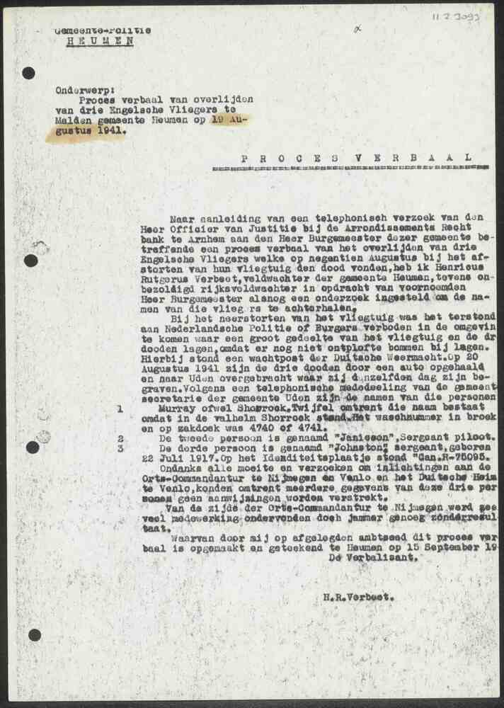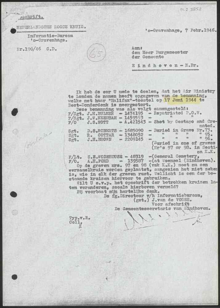 Verslagen/rapportern over neerstorten van Lancaster ...
