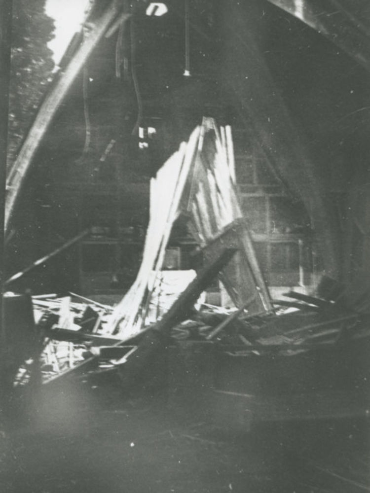 Foto van puinhopen van de Rita Kerk na een bominslag...