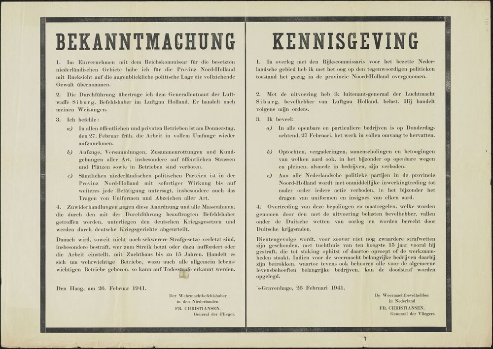 Bekendmaking overname gezag door Wehrmachtbefehlshab...