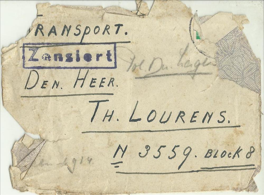 Enveloppe "aan Dhr Th Lourens Erziehungslager Aken D...