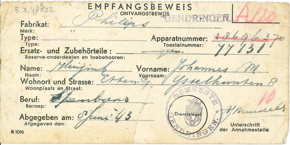 Tweede Distributiestamkaart van : Henri Arnold Anton...