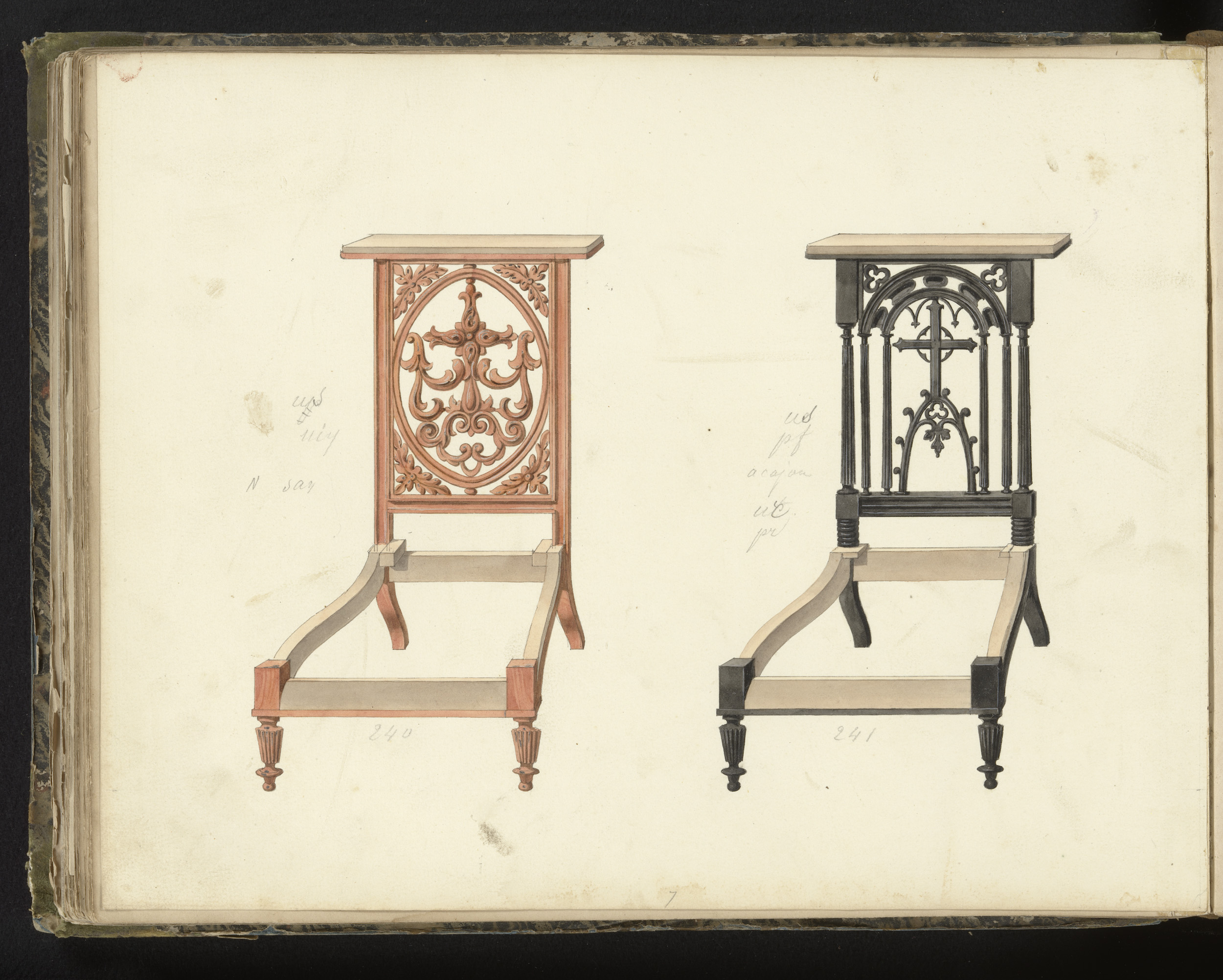 Twee ontwerpen voor prie-dieu’s