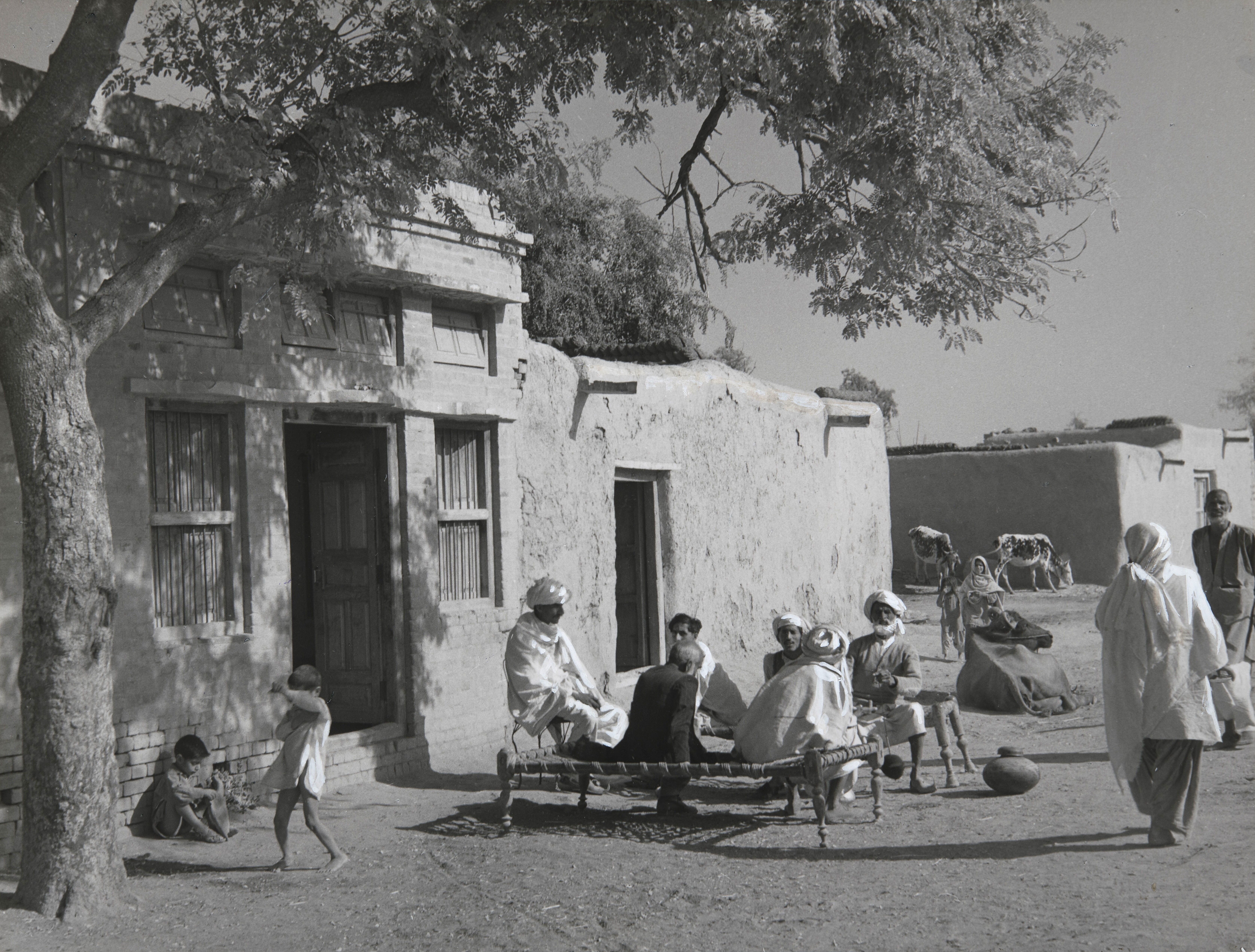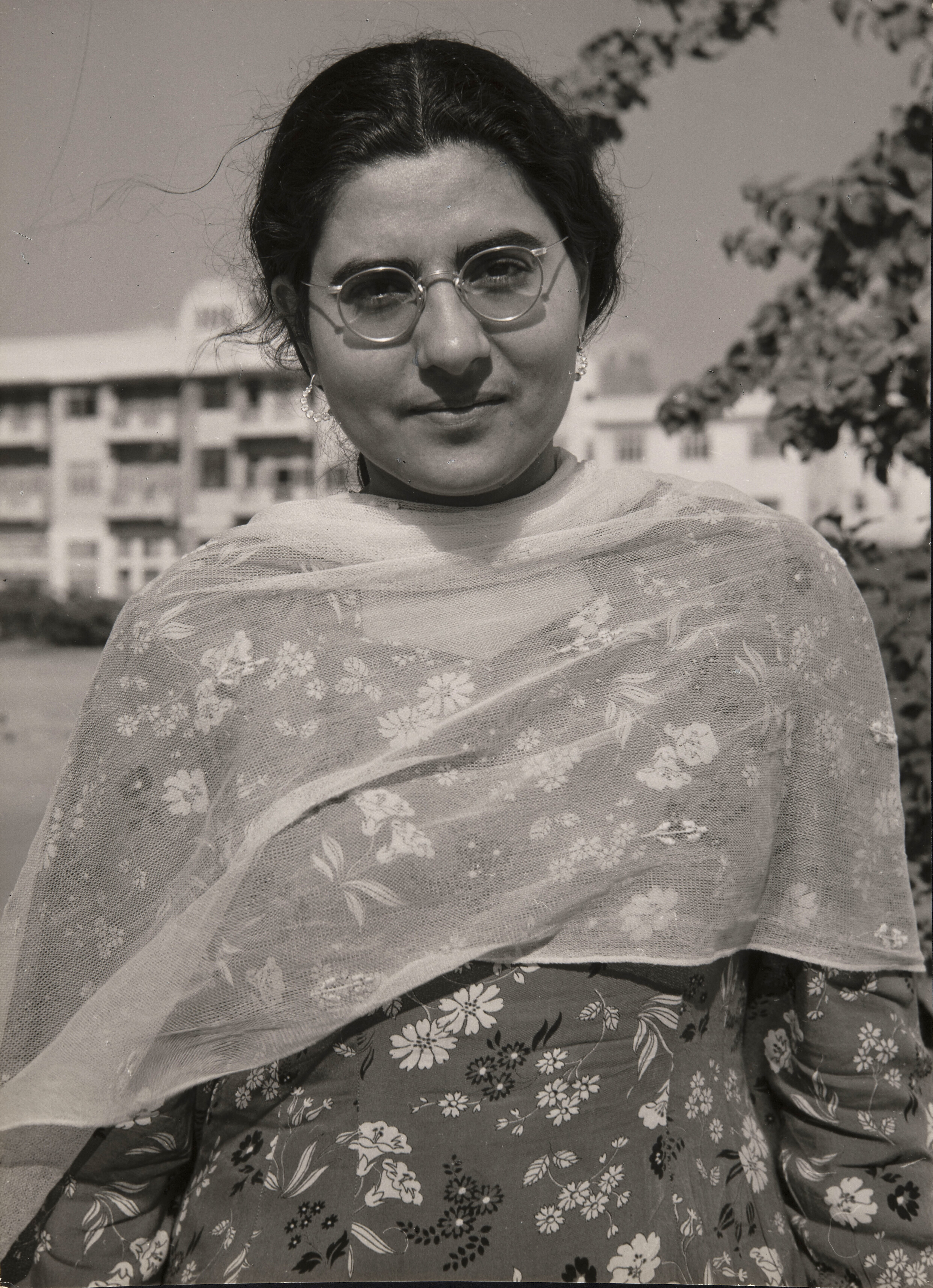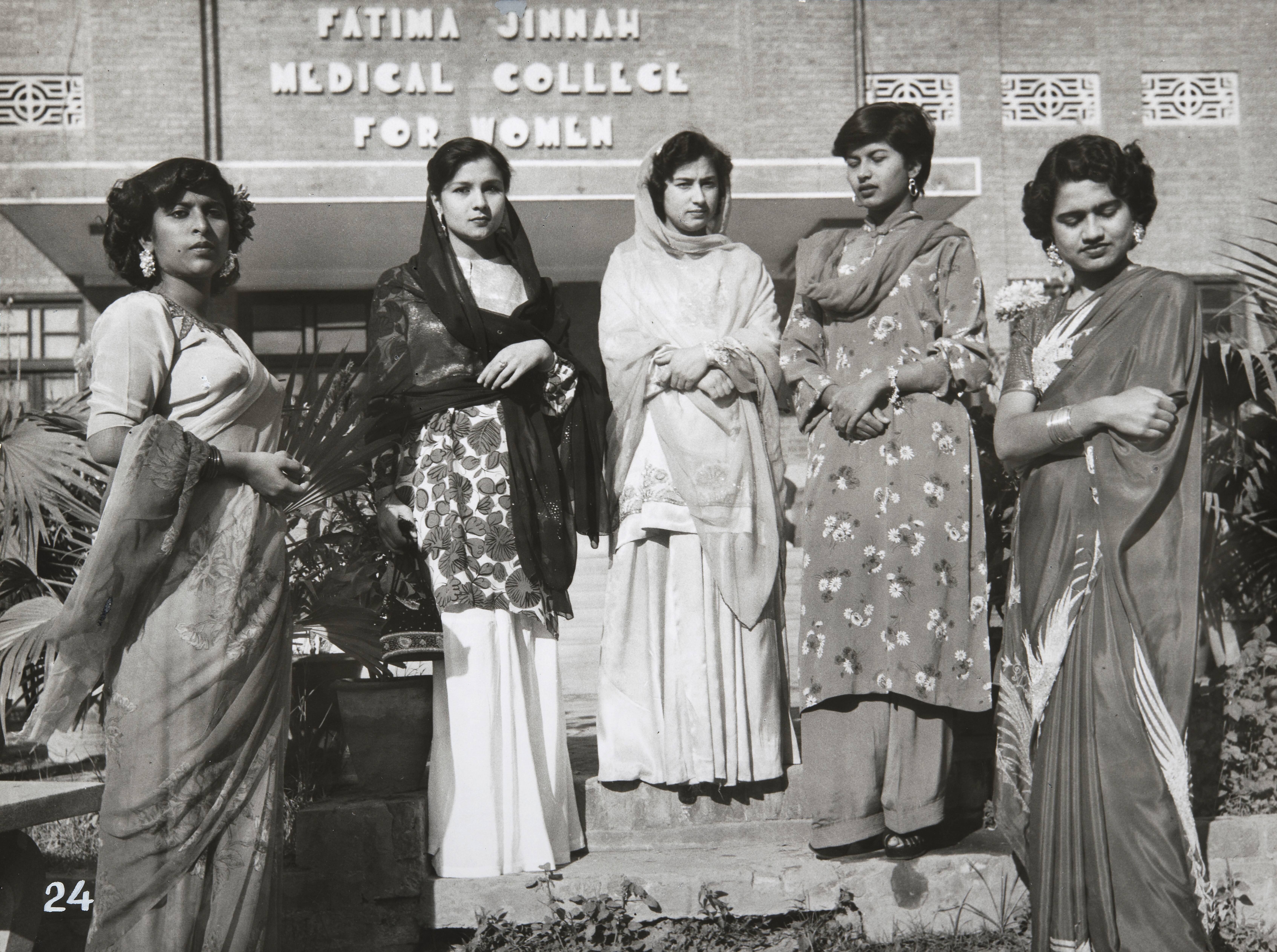 Groepsfoto van vijf vrouwen voor de 'Fatima Jinnah m...