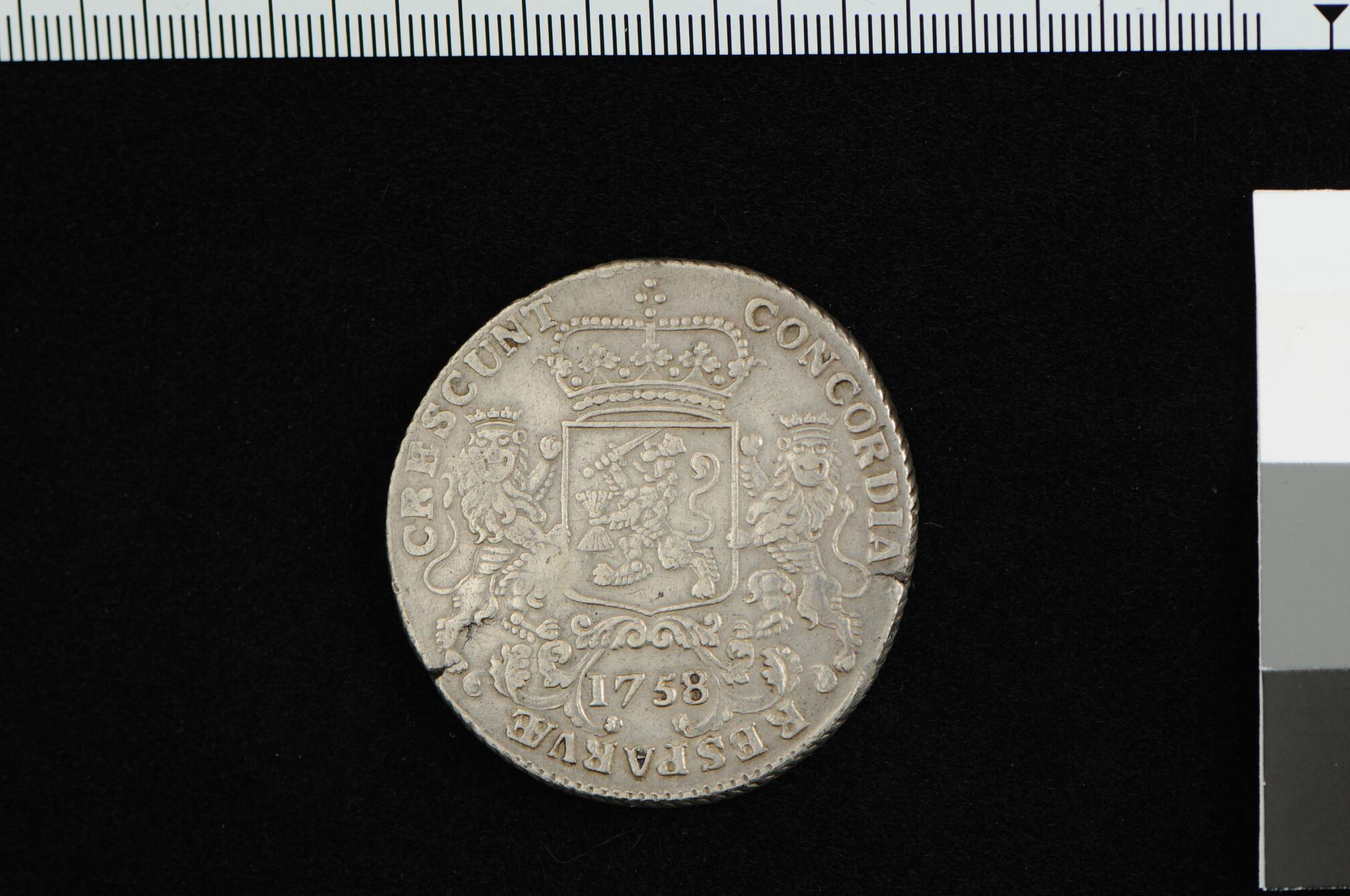 Een dukaton van West-Friesland, 1758, met inslagen