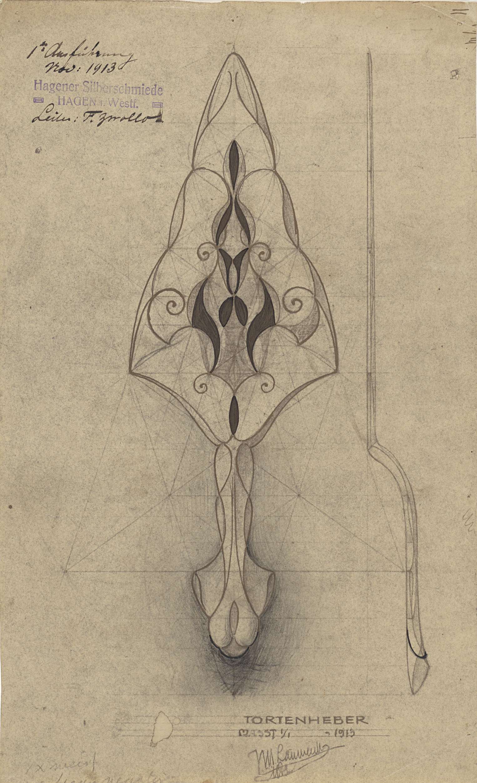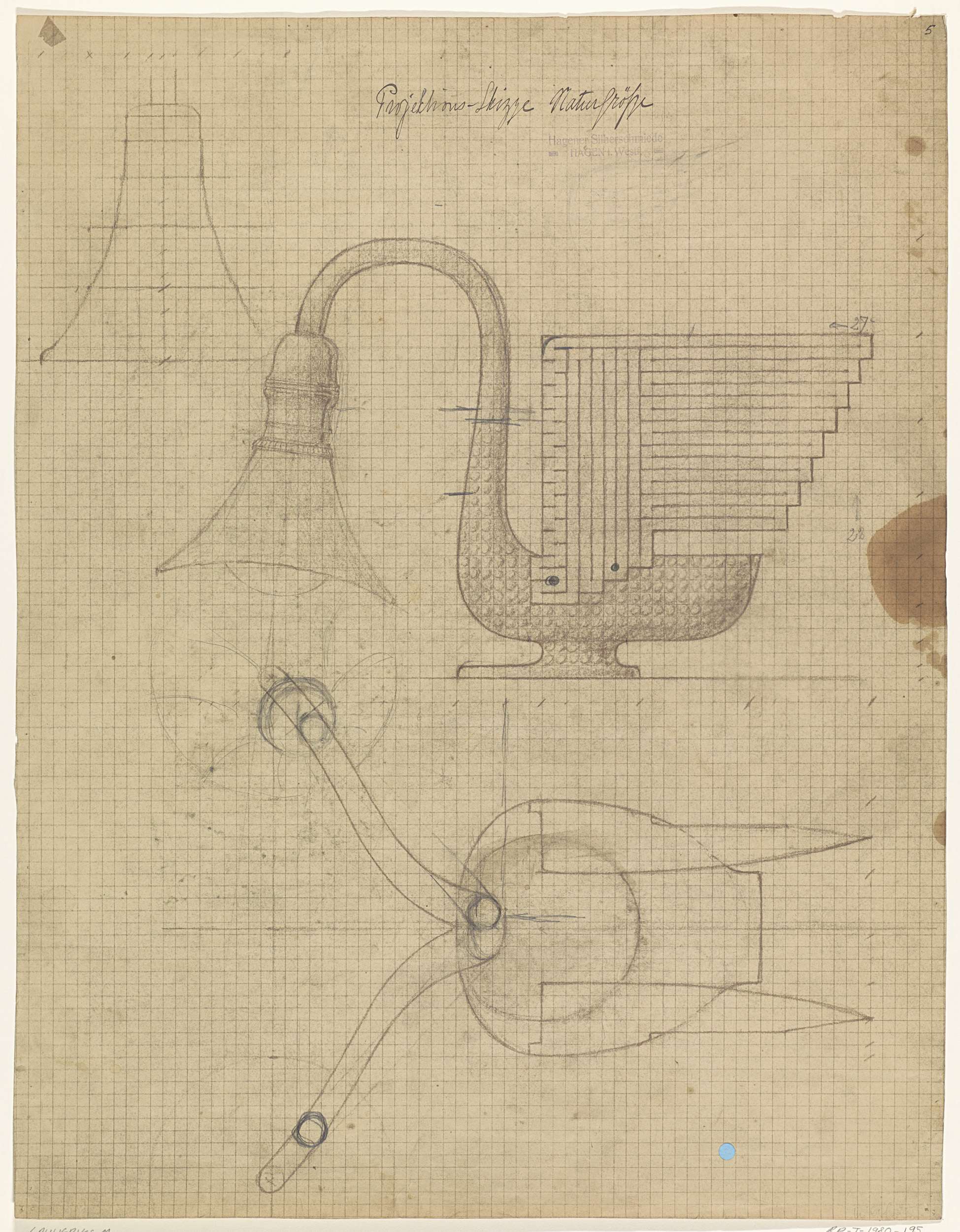 Ontwerp voor een zilveren tafelstuk in de vorm van e...