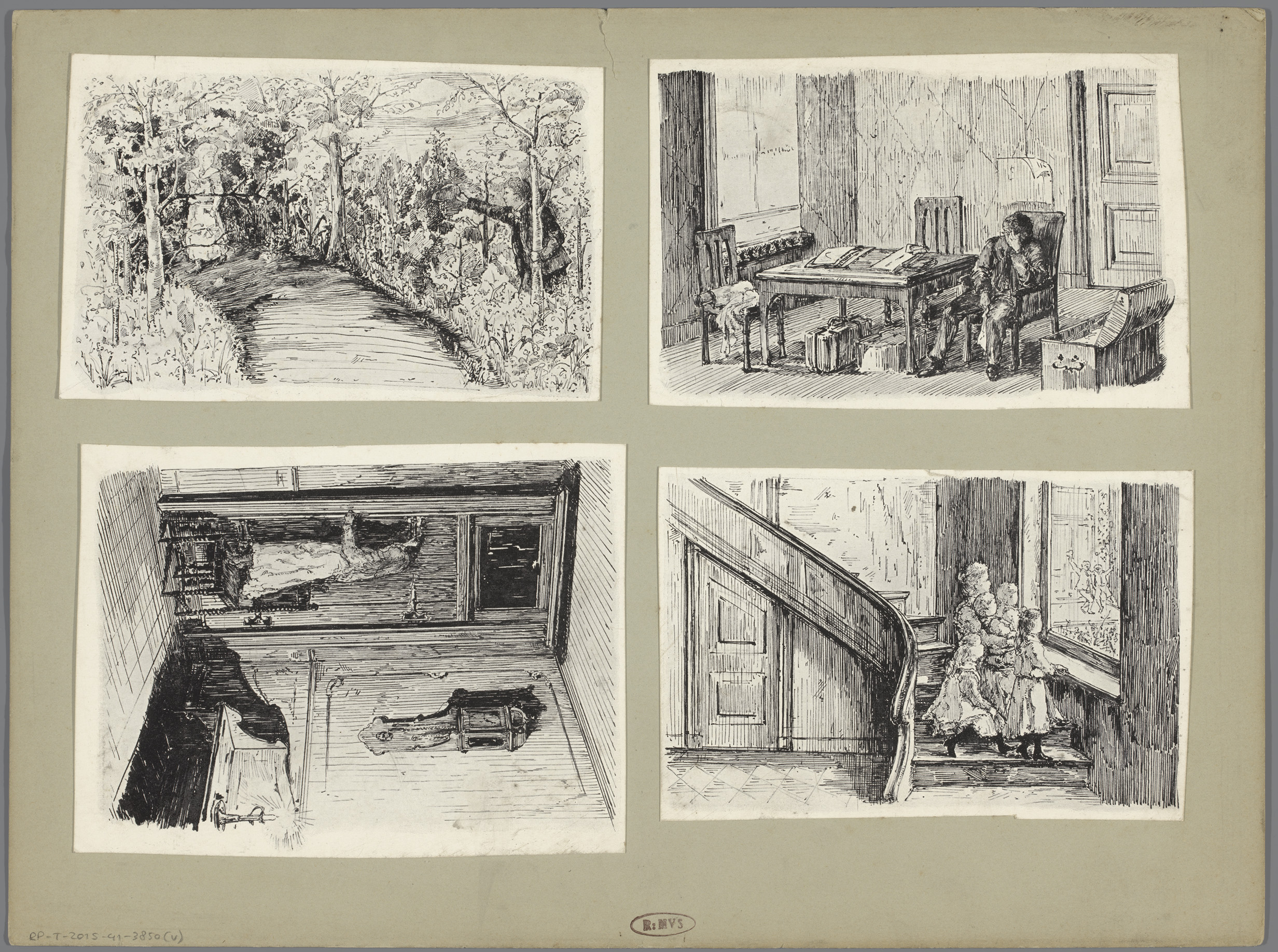 Vier illustraties bij: Nannie van Wehl, De buren, 1907