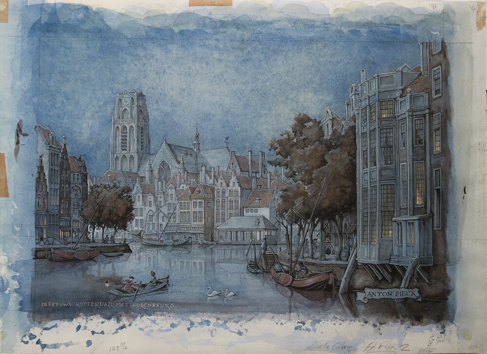 Kalenderplaat ‘Rotterdam in de 18de eeuw, Korenbeurs...