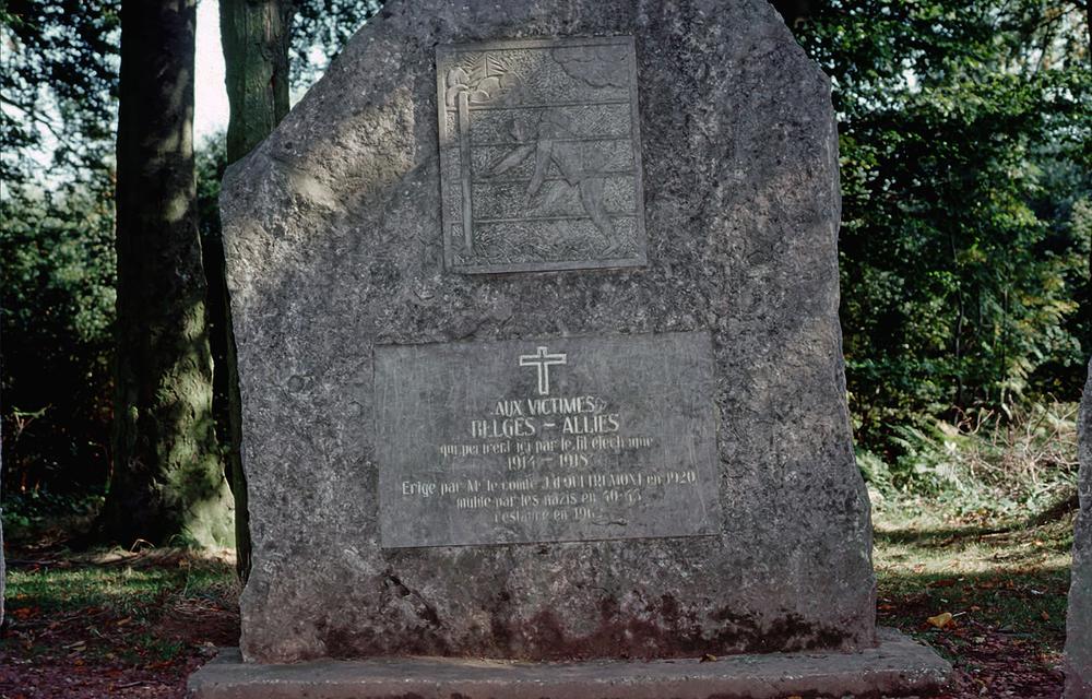 Gedenknaald op landgoed Nieuwkerk aan de Belgische g...