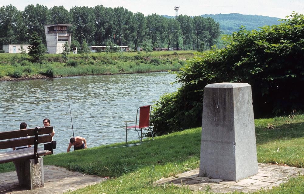 Grenspaal 1 bij Schengen Luxemburg