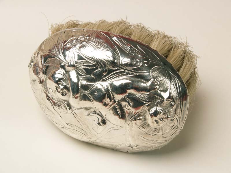 Kleine zilveren borstelrug met voorstelling van cupido