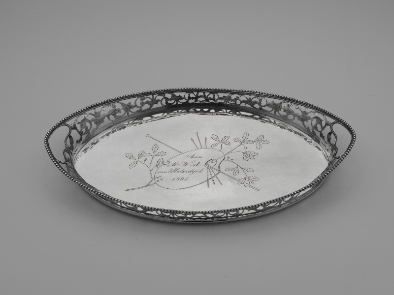 Ovalen zilveren schaaltje met de tekst "Aan Mr. W. A...