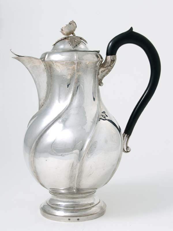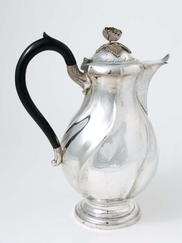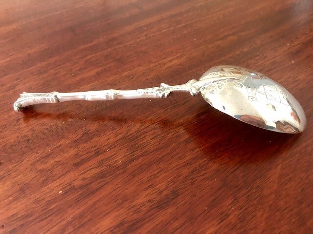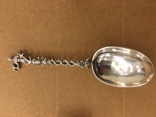 Suikerstrooilepel met gravering op de steel, C-volut...