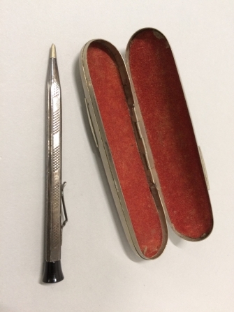 Zilveren vulpotloodje in metalen doosje met roodbrui...