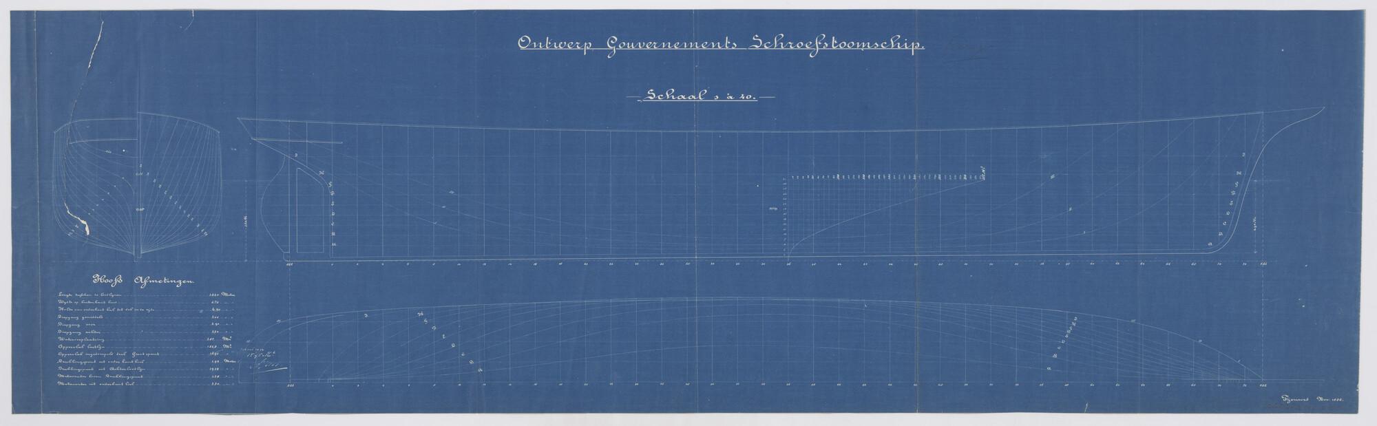 Lijnenplan, spantenraam en voornaamste afmetingen va...