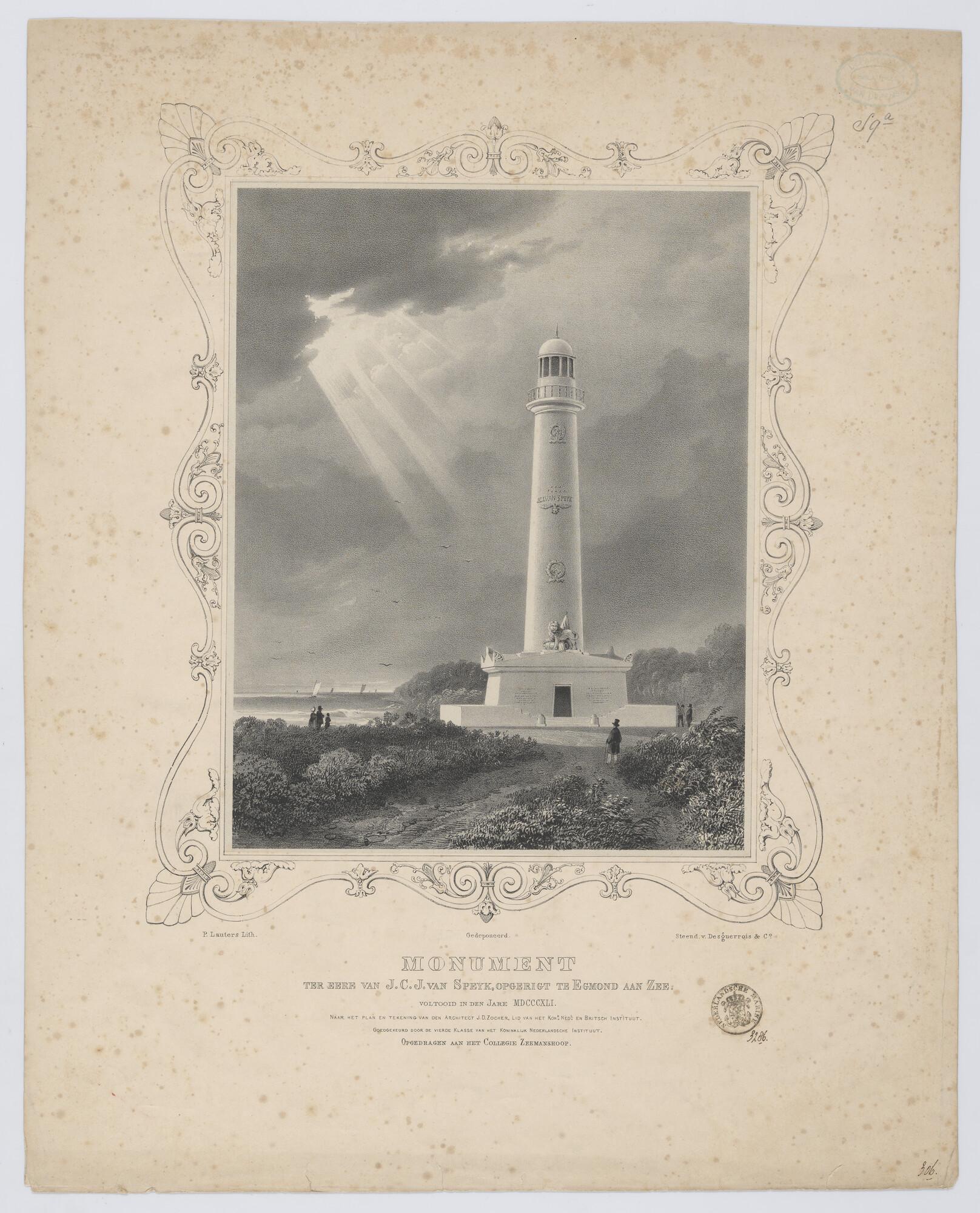 Prent van de J.C.J. van Speyk vuurtoren te Egmond aa...