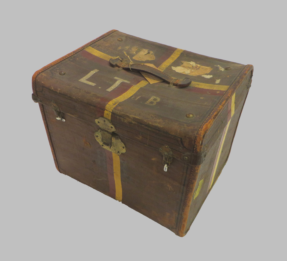 Rijtuigkoffer, gelabeld met 'Douairiere Laman Trip-d...