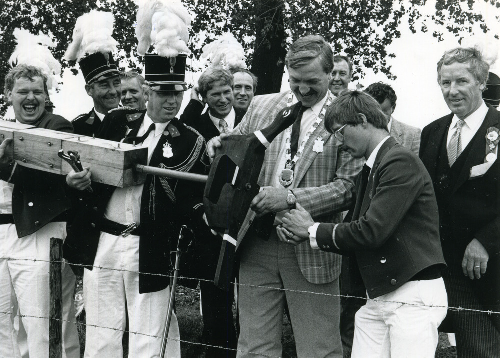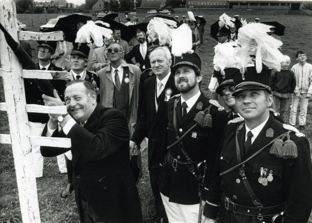 Zwart-wit foto van het vogelschieten in Herwen door ...