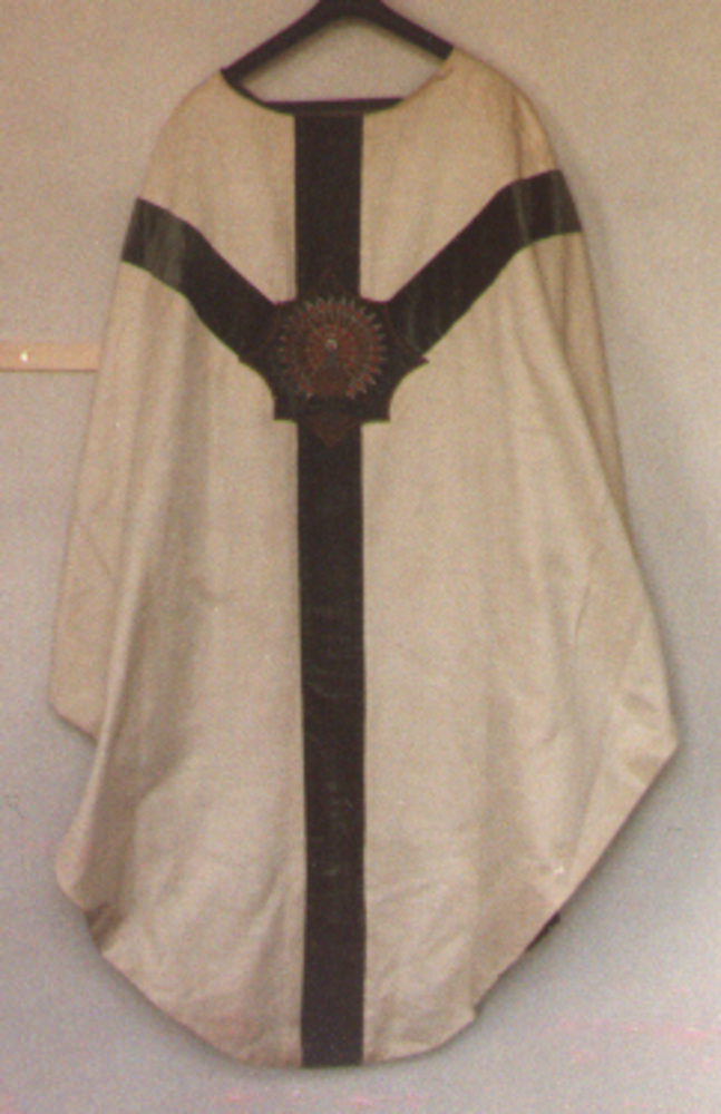 Kazuifel met gaffelkruis van rayon door H. Lowes, ci...