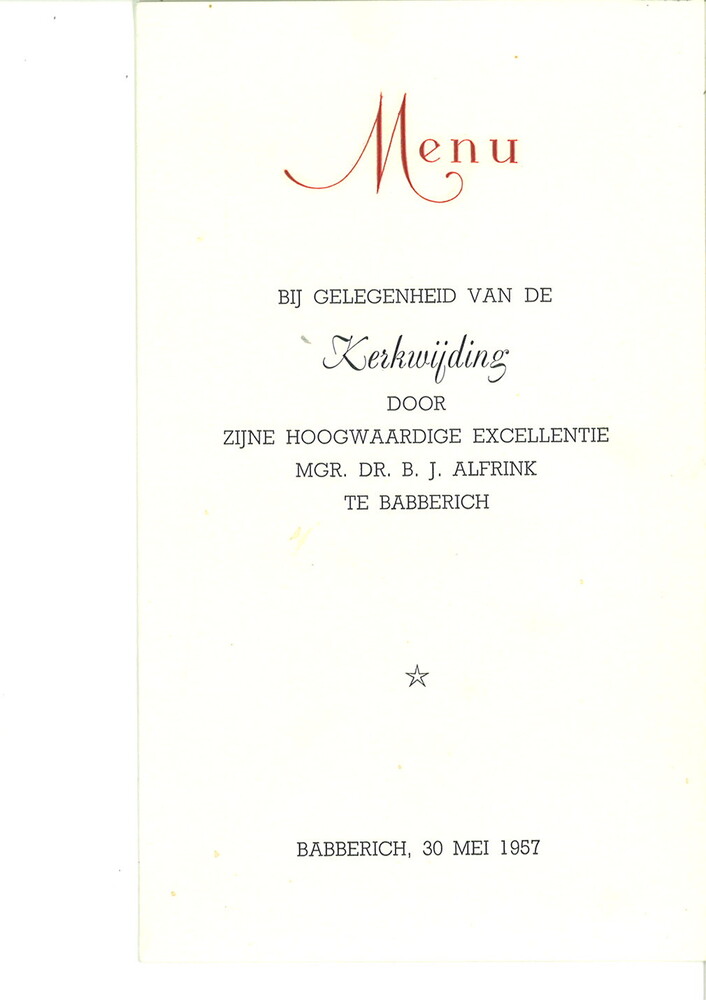 Menukaart op papier van het diner ter gelegenheid va...