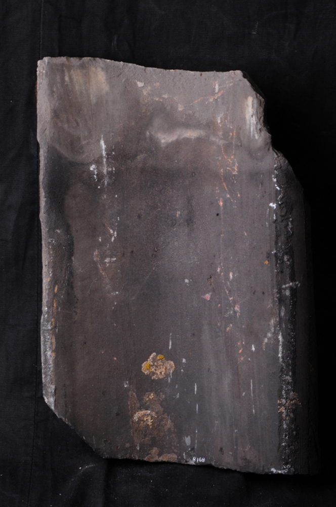 Dakpan van keramiek afkomstig van de schuur aan de W...
