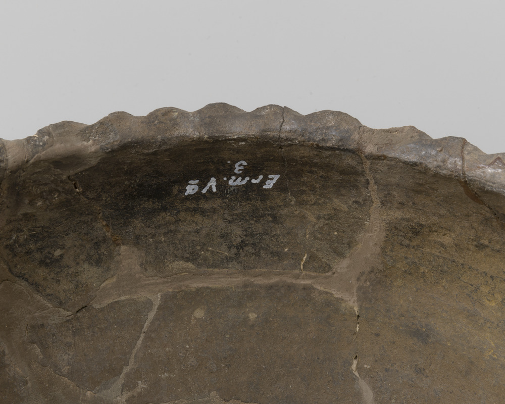 Grape van handgevormd aardewerk met gedraaide bovenrand