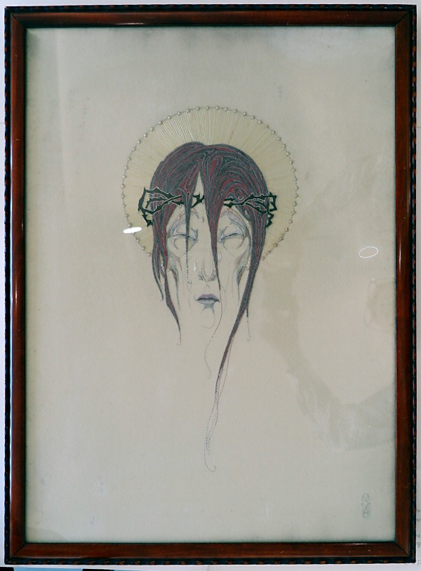 Bewerkt lijstje met wandkleed Christushoofd