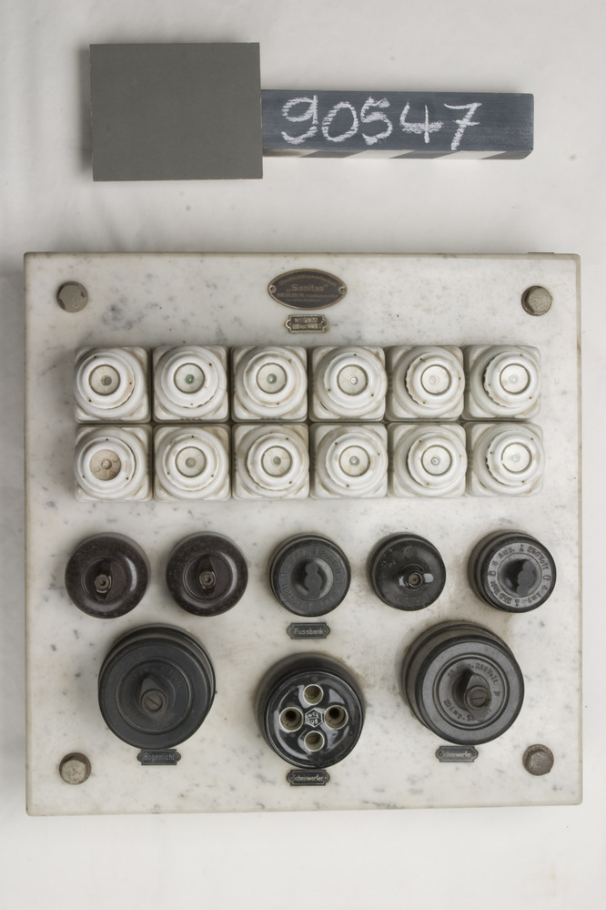 Schakelaar, volt- en ampèremeter, spoel, grondkabel