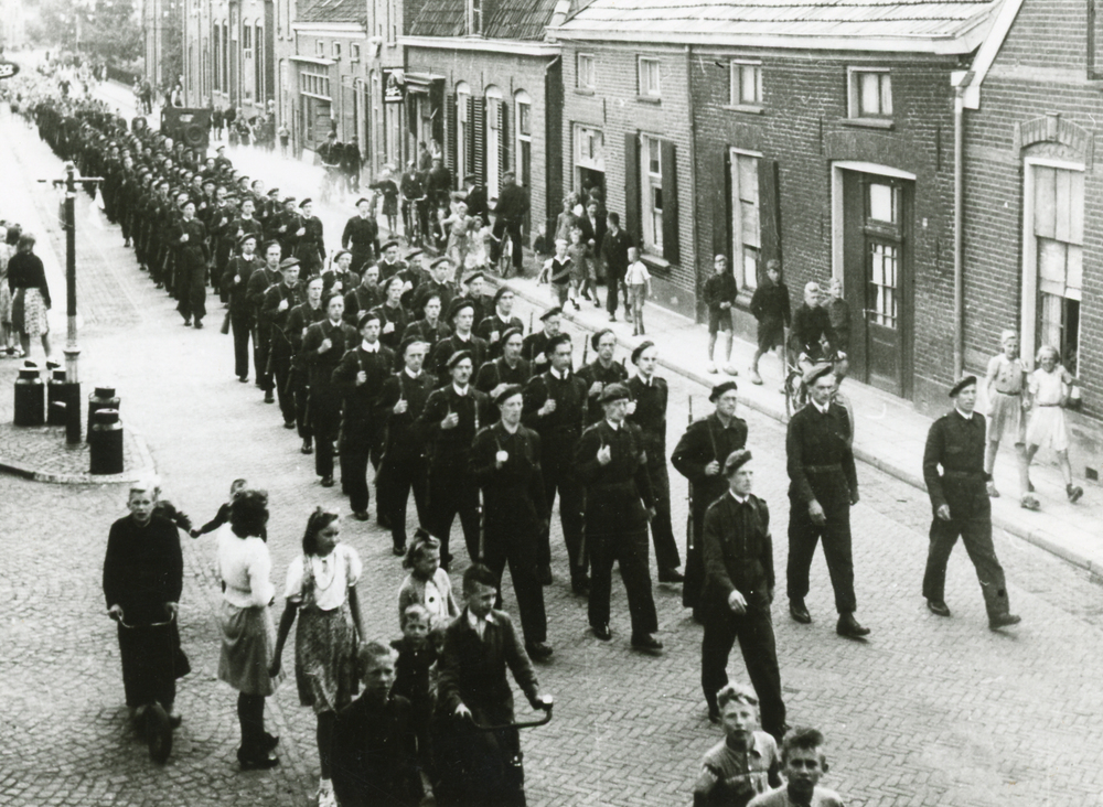 Nederlandse vrijwilligers marcheren door Aalten (Dut...