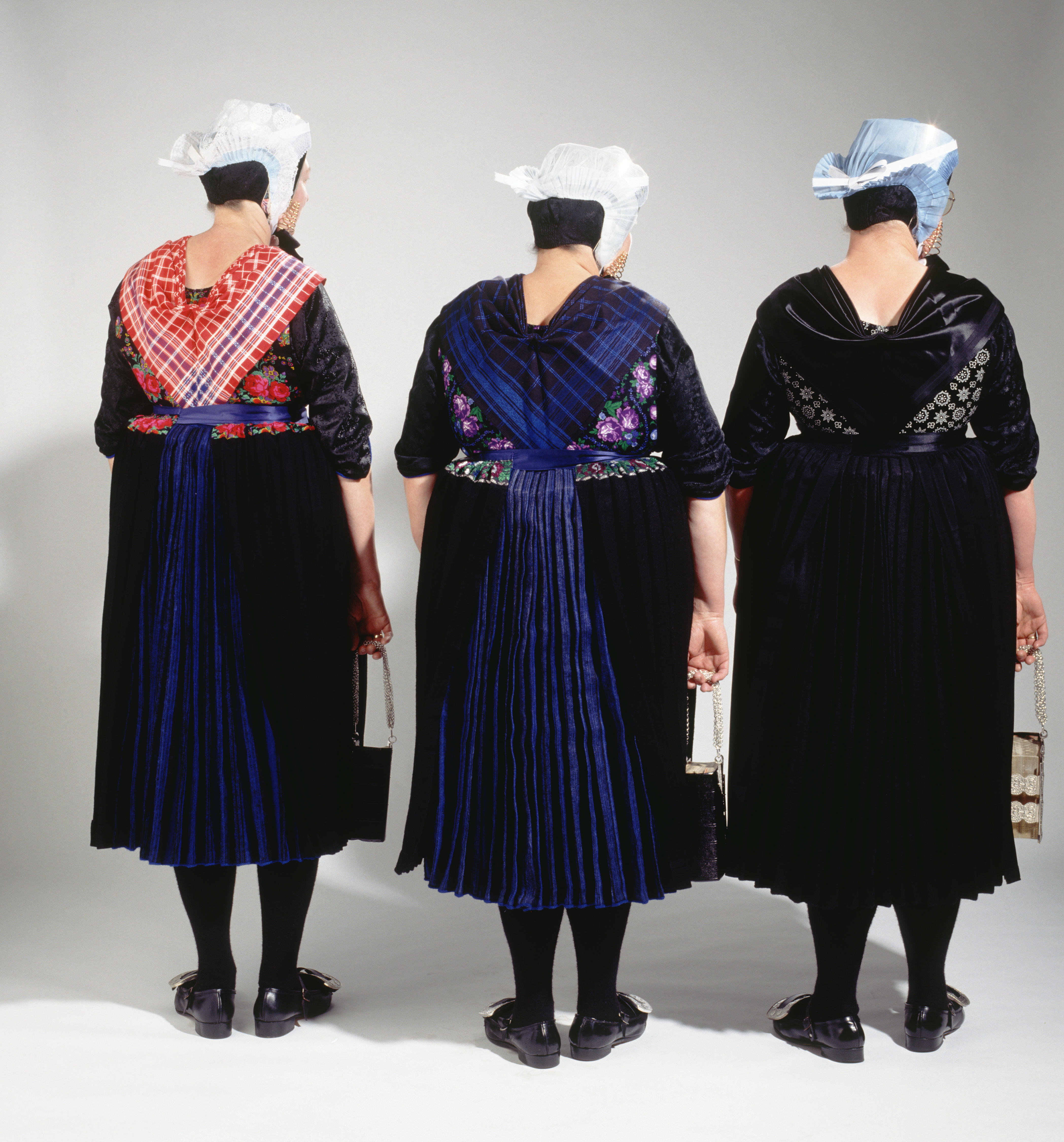 Drie vrouwen in streekdracht uit Rouveen, 1993 (kleu...