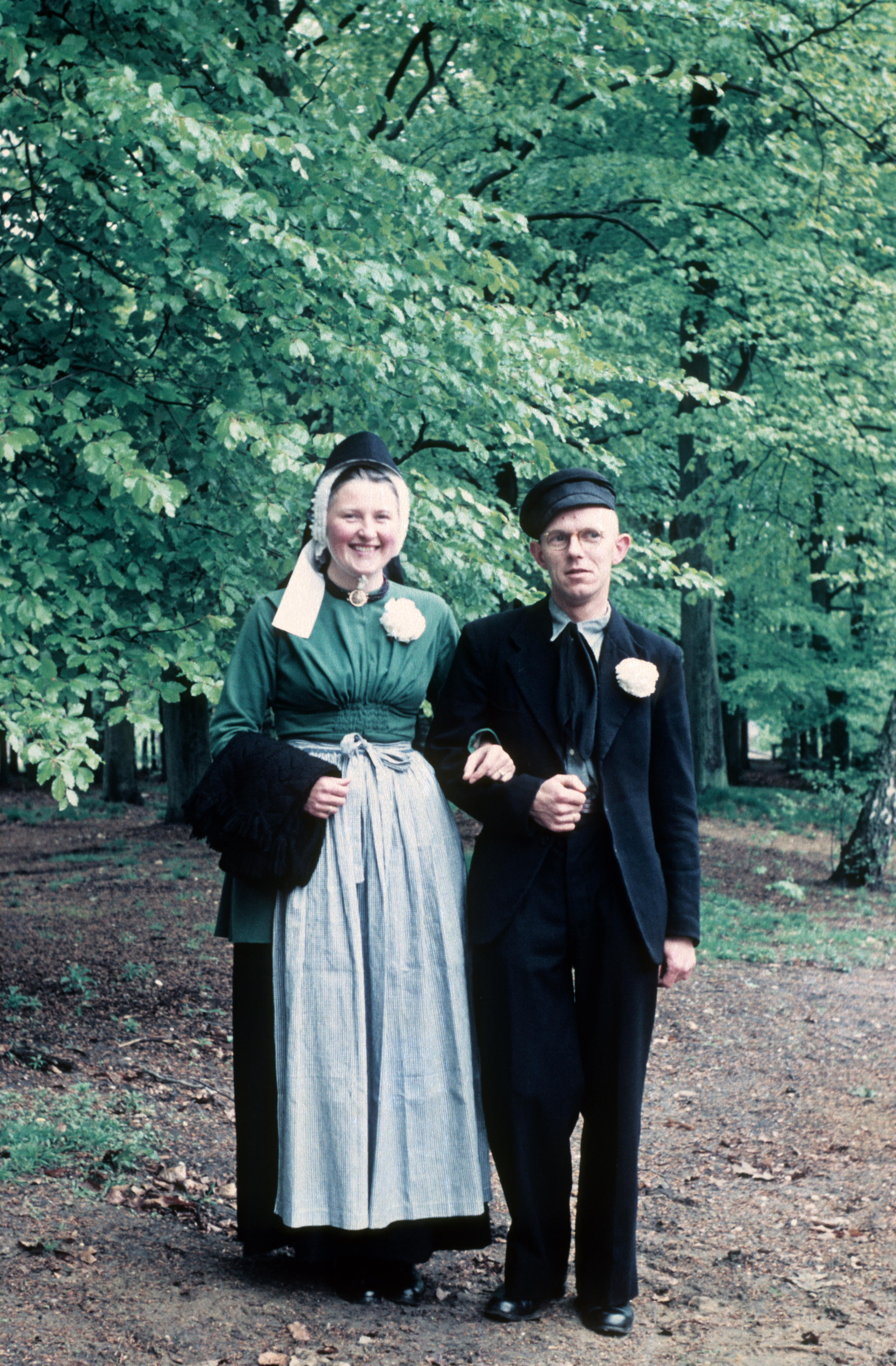 Man en vrouw in Scheveningse dracht, 1955 (diapositief)